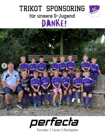 Doch damit nicht genug: Nach der erfolgreichen Teilnahme an einem Gewinnspiel wurden unsere G-Jugend-Kicker zudem von Perfecta Fenster/Türen/Rollläden mit einem neuen Trikotsatz in unseren Vereinsfarben lila-weiß überrascht. Die Freude über eine neue Ausstattung war auch hier groß!